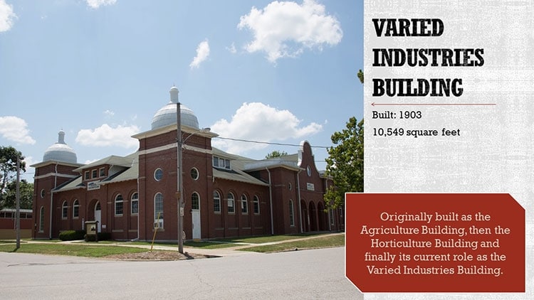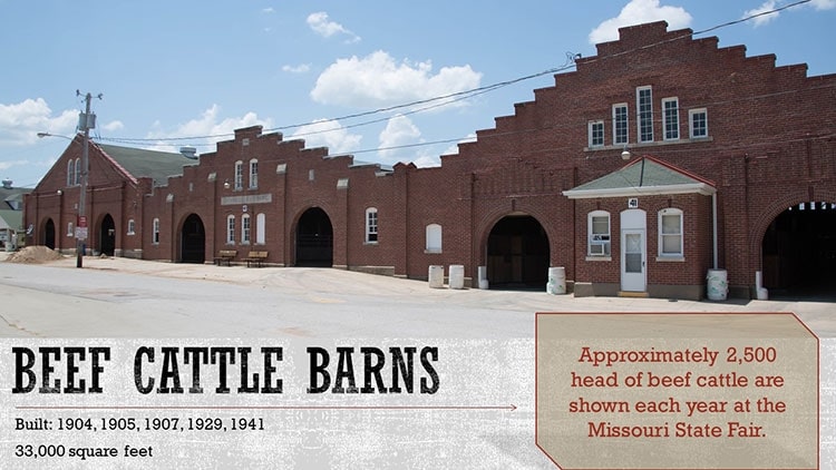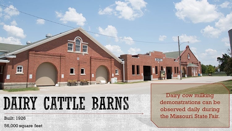 Established in 1899, the Missouri State Fairgrounds is one of the oldest fairgrounds in the nation and serves as a premier agriculture showcase for the Midwest. The Fairgrounds is listed on the National Register of Historic Places with 47 buildings, 5 contributing sites, 7 contributing structures and 7 contributing objects. The grounds feature examples of Art Deco, Mission Revival and Romanesque Revival architecture, which serve as exposition halls and livestock barns, among others.